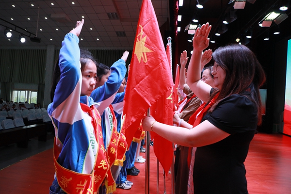 全体队员共同唱响《中国少年先锋队队歌》,稚嫩的歌声唱出了对少先队的热爱和忠诚。