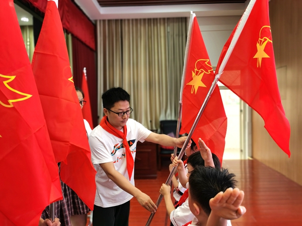 领导们向新队员表示祝贺,希望他们都能够爱护好红领巾,同时也希望队员们立志向、爱组织、练本领,努力成长为能够担当民族复兴大任的时代新人。