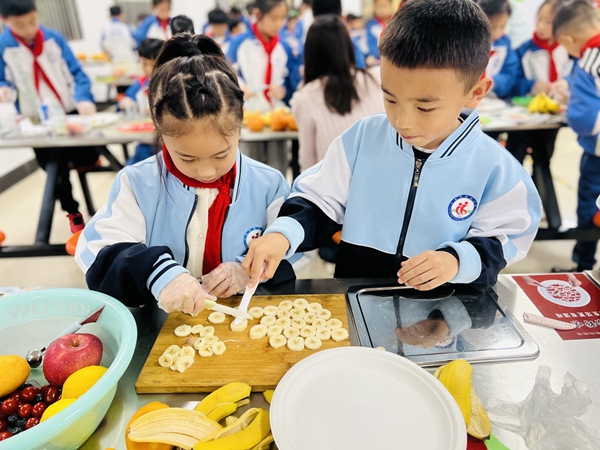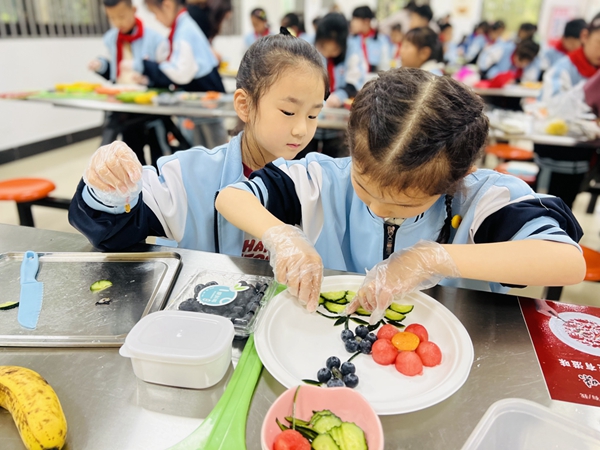各个班级分别展开初赛,选拔出2位“拼盘小能手”参加本次水果拼盘大比拼的决赛。