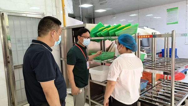 检查组一行还深入到河西食堂进行食品安全工作指导,对食堂的工作流程及从业人员的健康证进行了全方位检查。指出学校食堂要严格落实食品加工安全操作的要求,做到严格监管,规范操作流程,确保食品安全卫生。
