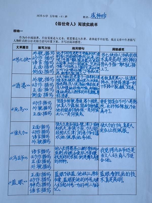 部编版小学语文五年级下册第五单元课文《刷子李》一文选自冯骥才的《俗世奇人》一书,裕安区河西小学五年级4班芦苇中队开展了主题为“俗世人不俗 奇人事亦奇”的整书本阅读活动。