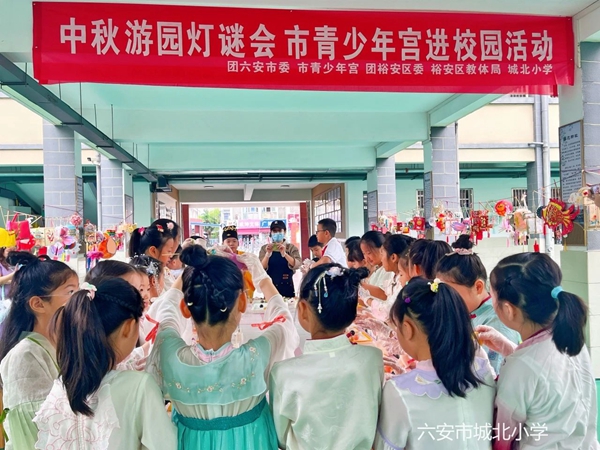 一岁一中秋,一年一思忆。为进一步弘扬中华民族优秀传统文化,充分发挥传统节日文化涵育功能,唱响“我们的节日”主题教育,引导少年儿童在亲身体验中感受传统节日和习俗的魅力,同时丰富学校《行走在传统文化中的劳动教育》特色融课程,2024年9月13日上午,億彩网联合共青团六安市委、共青团裕安区委、区教体局开展了“我们的节日・中秋游园灯谜会”系列活动。