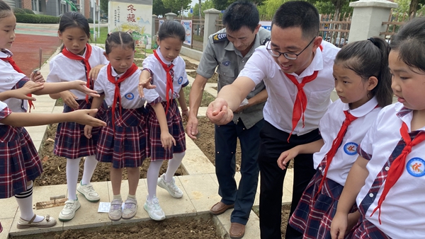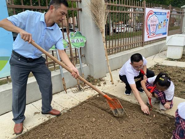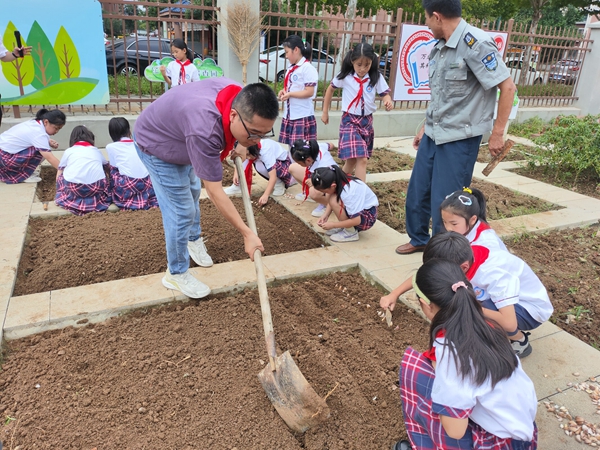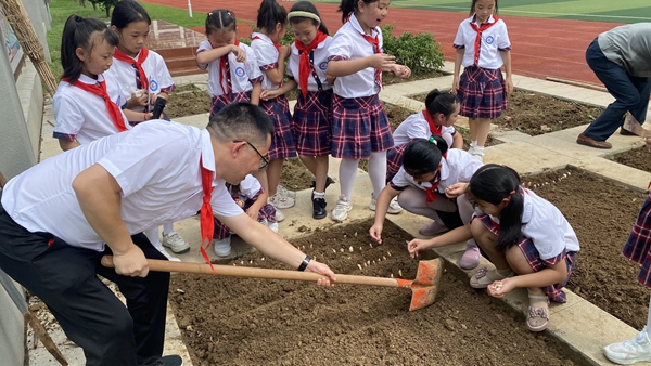 发言结束后,金马小学执行校长郑文丰宣布秋耕活动正式开始,在老师的指导下,小队员们化身田园小主人,齐心协力地完成翻土、播种、培土、压实等环节。在劳动过程中,老师们不仅及时指导小队员的动作,还耐心解答队员们的各种问题。秋风拂过,金马小学的劳动基地里满是欢声笑语,满是耕种的喜悦。