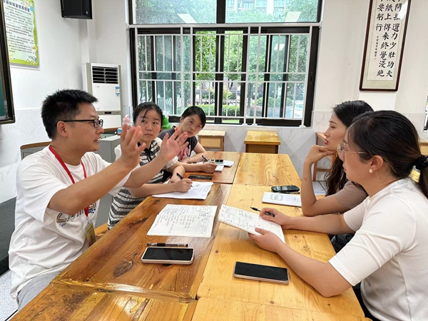 接下来的互动和研讨环节由河西小学倪成成校长主持。首先,杨老师对教学设计思路进行现场说课且对课堂活动中出现的问题进行总结反思。听课领导和老师们从情境设置、自主探究等方面对教学设计、教学实施等方面展开交流,同时就目前劳动课程实施的局限和困惑进行了探讨。