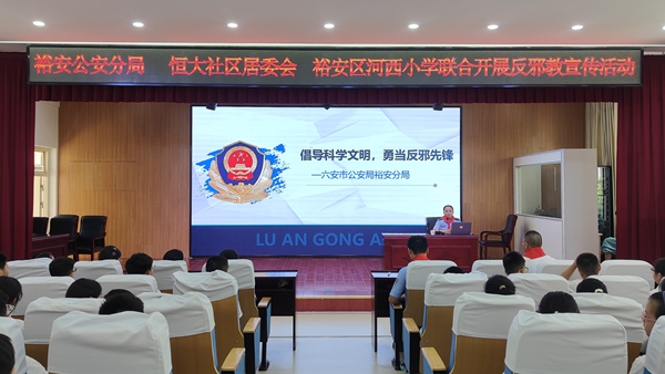 活动第二项,六安市公安局裕安分局郝绪中警官走进河西小学,开展“倡导科学文明,勇当反邪先锋”普法讲座,给同学们上了一堂别开生面的“反邪教第一课”。讲座中郝警官向同学们介绍了什么是邪教,邪教的本质和危害,倡导同学们增强自我防范意识,树立崇尚科学反对迷信的理念,提升了同学们的自我保护意识。