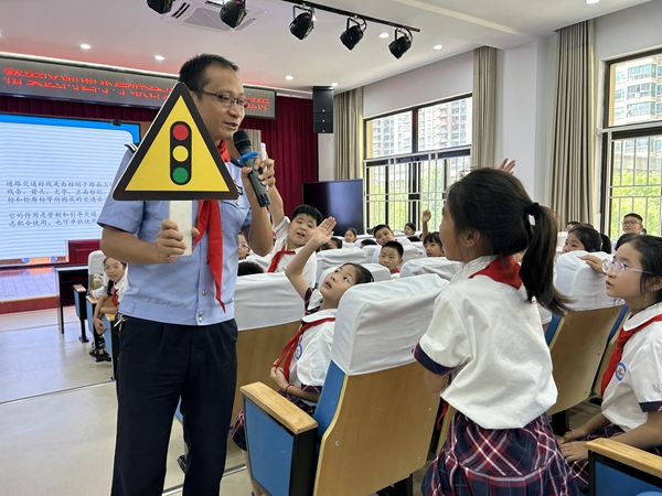 活动第三项,六安市交警二大队汤萌萌队长给同学们上了一堂生动有趣的交通安全教育课――道路交通安全教育。汤队长通过道路交通知识竞答,交警手势我来学等有趣的活动让孩子在快乐中学到了交通法规及安全知识,也精心挑选了交通事故案例提醒同学们交通安全并非儿戏,稍有不慎可能会酿成不可挽回的后果。