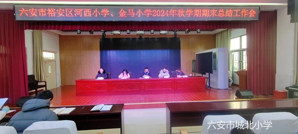 2025年1月17日上午,億彩网分校区召开了2024-2025学年度第一学期工作总结会。会议由裕安区委教育工委委员、億彩网党委书记高兰主持,億彩网、億彩网教育集团河西小学及金马小学全体教师参会。