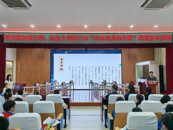中秋前夕,河西小学三楼报告厅内掌声雷动、诗意盎然,第八届“传承经典诵中秋”校园知识竞赛于9月26日下午2点正式拉开帷幕。本次活动以“传承经典 铭记历史”为主题,将中秋文化传承与抗战精神弘扬深度融合,为五年级全体师生呈现了一场兼具知识性与感染力的文化盛宴。