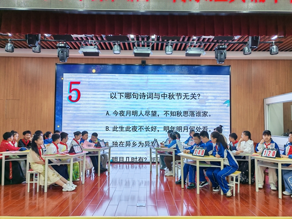 此次活动通过必答、求助、抢答等多样形式,涵盖中秋习俗、经典诗词、抗战历史等丰富内容,不仅让同学们在角逐中夯实了文化知识,更在团队协作中体会到集体力量,在重温历史中厚植了爱国情怀。在这场欢声笑语的文化“盛宴”中,河西小学的同学们度过了一个兼具文化韵味与精神力量的中秋佳节,让传统文化与红色基因在心中深深扎根。(魏传亚)