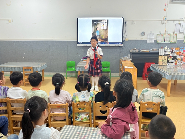 活动前夕,一场温暖的预热活动已在金马幼儿园悄然进行。河西小学的少先队员代表们走进大班教室,为弟弟妹妹们带来了精彩的红色故事分享。小宣讲员们用生动朴实的语言,讲述了革命年代英雄先辈的感人事迹。孩子们听得聚精会神,在跌宕起伏的情节中,感受着不屈不挠的革命精神,红色的种子在稚嫩的心田悄然播下。这一环节不仅为正式活动营造了浓厚氛围,更体现了少先队员的榜样引领作用。