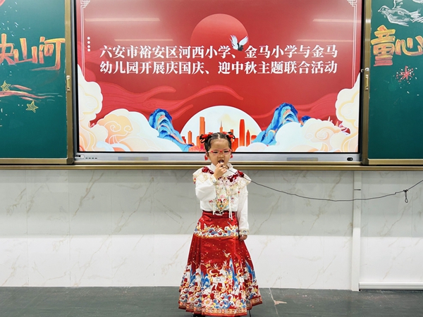 随后,金马幼儿园的孩子们带来了爱国古诗词诵读。他们用稚嫩而坚定的声音,吟诵千古名篇,在抑扬顿挫间传递着对祖国山河的深情与传统文化的热爱。清澈的眼神、认真的模样,赢得了现场阵阵掌声,展现了新时代幼儿的文化自信与精神风貌。