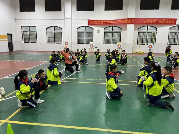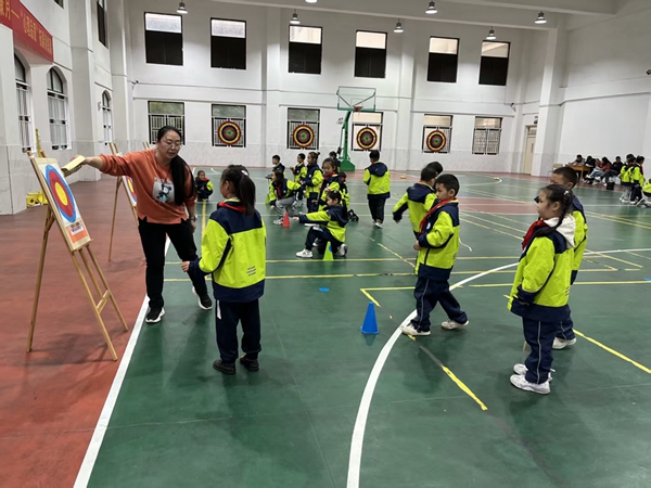 课堂上,李阳阳老师结合二年级学生活泼好动、注意力集中时间短的学情特点,以“实战模拟”为核心创设情境,将投准练习融入“隐蔽打击”“乘胜追击”“全能投手大比拼”等趣味环节中。从集体复习肩上屈肘、瞄准发力的基础动作,到跪姿投准、站姿投准的分层练习,再到小组循环竞赛,层层递进、环环相扣的教学设计,充分调动了学生的学练积极性。孩子们在轻松愉悦的氛围中不仅掌握了投准动作的技巧,更在小组合作中培养了团队意识和规则意识,真正实现了“玩中学、学中乐、乐中思”。