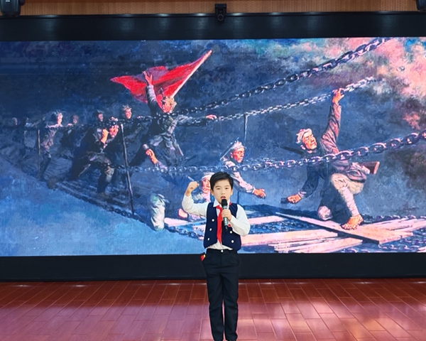 比赛分两轮有序推进。初赛阶段,两校三至五年级以年级为单位开展选拔,每班均推选1名学生参赛。小选手们提前查阅长征史料,从“半条棉被”的温情到“飞夺泸定桥”的壮烈中汲取灵感,结合自身感悟打磨演讲内容。舞台上,他们虽稚气未脱,却以坚定的眼神、真挚的语言诠释着对“革命理想高于天”的理解,将红军战士跨越雪山草地的坚韧与团结娓娓道来,精彩表现赢得评委与师生的一致认可。经过层层筛选,最终两校区共19名优秀选手脱颖而出,晋级决赛。