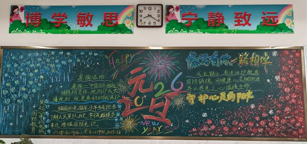 此次主题板报评比活动,是我校落实“五育并举”、推进综合育人的一次创新实践。它将节日庆祝与常态教育、知识普及与价值引领、文化传承与时代关切有机融合,极大地丰富了校园文化的层次与内涵。通过这一载体,不仅美化了教室环境,营造了喜迎新年的欢乐气氛,更有力地促进了各班级文化建设水平的提升,在潜移默化中巩固了安全教育、法治教育、健康教育和思想教育的成果,为学生的健康成长营造了更加优质、全面、立体的校园文化环境。(姚佳佳)