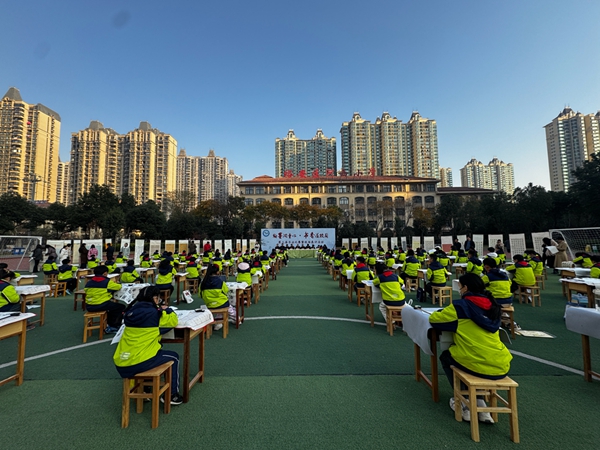 12月5日上午,阳光正好,惠风和畅,百人软笔书法现场展评活动在学校操场精彩启幕,全区中小学专兼职书法教师齐聚一堂,共赴这场笔墨之约。此次比赛特邀裕安区书协主席赵善洲、六安市书协副主席胡家喜、六安市书协副主席方之等六位书法家担任活动评委。同时,所有参赛学生的家长也来到了校园,全程参与,共沐成长。