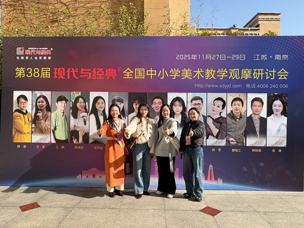 11月27日至29日,美术组姚佳佳、钮士兰、陈翠荣、李黎四位教师,在南京参与第38届“现代与经典”全国中小学美术教学研讨会。两天半时间里,团队共观摩13节示范课、3场专家讲座,见证AI技术在美术课堂的创新应用――从AI复原宋代古画玩具,到将学生二维作品转化为立体模型,更学习到基于本地文化开发校本课程的思路,如融合民居建筑、非遗美食设计“接地气”的美术项目。