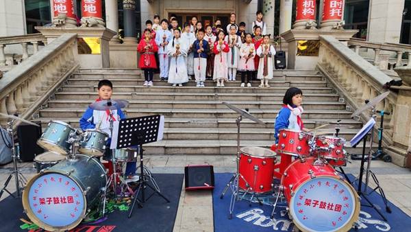 活动现场,我校音乐社团的队员们身着整齐的服装,精神饱满地登上舞台。他们不仅用表演为义卖活动增添了欢乐的气氛,更用音乐的力量传递了爱心和温暖。