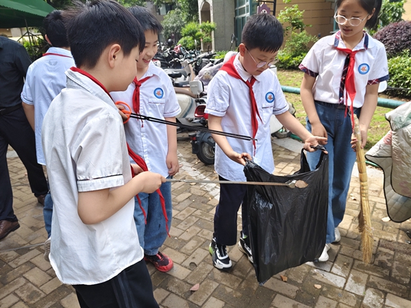 此次活动不仅是爱国卫生月的实践,更是一堂生动的劳动教育课。不仅锻炼了队员们的动手能力,还深刻体会到环卫工人的辛苦,今后,我校将继续深化志愿服务内涵,让红领巾在服务社会中绽放光彩。(刘银)