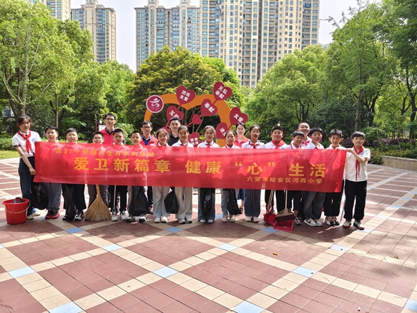 为响应全国爱国卫生月的号召,弘扬新时代文明风尚,增强青少年社会责任意识,六安市裕安区河西小学组织少先队员走进社区,开展以“爱卫新篇章 健康‘心’生活”为主题志愿服务活动。为社区环境美化贡献力量,展现了新时代青少年的担当与活力。