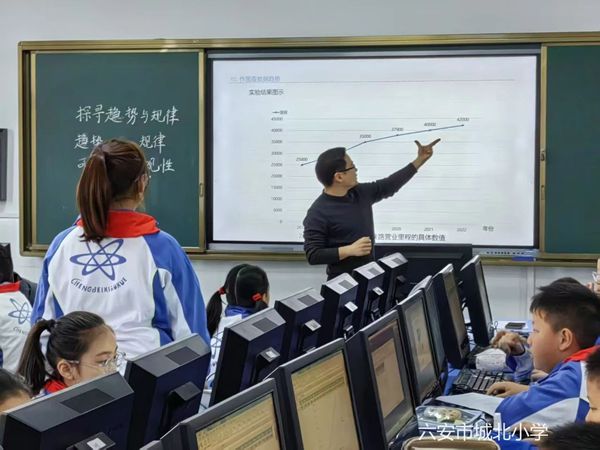本次教研活动课是由金涛老师带来的四年级信息科技课《探寻趋势与规律》,课堂在充满活力的氛围中开启,金老师以学生们熟知的生活中的案例为切入点,如身高、家庭支出等设计了符合学生认知特点的学习活动,教学活动紧紧围绕数据的价值展开,层层深入,将这些数据以折线图的直观形式呈现在学生们眼前,帮助学生逐步理解数据的规律和关系。