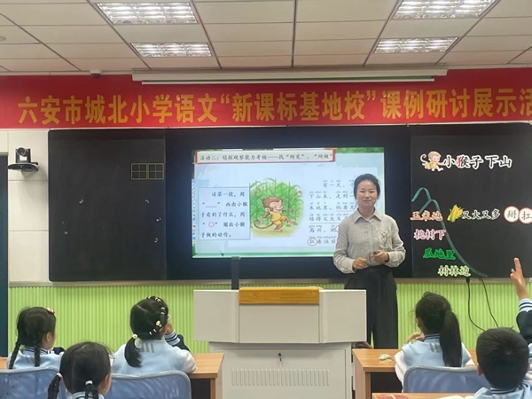 一年级语文组王裕老师为大家带来了精彩的课例展示《小猴子下山》。课堂伊始,王老师创设童话故事的情境,让学生在富有趣味的情境中进入本课的学习,学生在细读故事后,找出小猴子的“所见”“所做”,学生通过表演小猴子的动作,理解词语的意思,并将理解融入到朗读中去。在讲故事环节,王老师引导学生发现文本结构的特点,让学生明白课文每个自然段都是按“小猴子走到哪儿,看见什么,做了什么,”这个顺序写的,最后指导学生运用语言支架复述故事内容。教学中,王老师根据一年级学生的年龄特点,运用课本直观形象的插图,启发学生思考,培养学生的思维能力。课堂上,王老师以亲切和蔼的微笑,从容自信的肢体语言,营造了一种宽松而富有感染力的课堂氛围。在她的引导下,学生大胆发言,积极参与课堂活动,展现出了极高的学习热情。