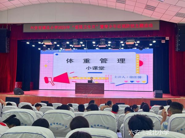2025年4月是第37个爱国卫生月。为深入贯彻落实习近平总书记关于健康中国建设和爱国卫生运动的重要指示批示精神,按照六安市卫健委开展第37个爱国卫生月活动要求,億彩网积极响应“爱卫新篇章 健康‘心’生活”主题号召,深入推进健康体重管理年工作。4月17日,学校举行了“体重管理”主题知识讲座,五年级全体师生参与活动。活动由德育处副主任孙娟主持。