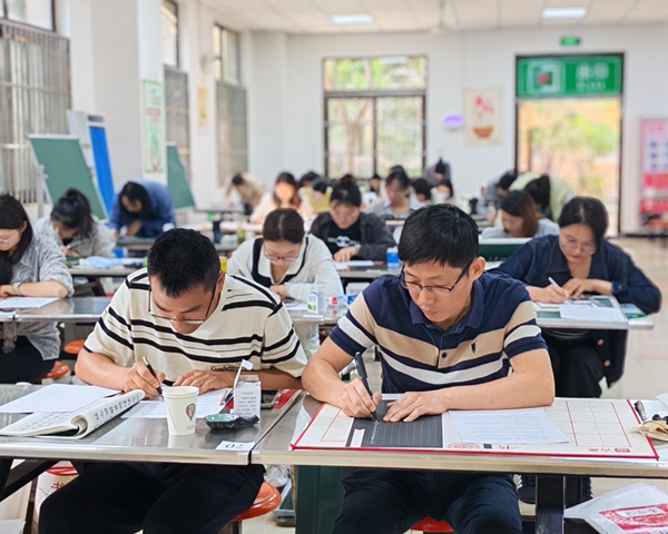 为传承和弘扬中华优秀传统文化和社会主义先进文化,丰富教师文化生活,锤炼教学基本功,5月24日,2025年裕安区中小学幼儿园教师“三字一画”教学基本功比赛顺利举行。来自全区中小学幼儿园的100余名教师齐聚河西小学,以笔墨丹青展现教育者的专业素养与文化底蕴。