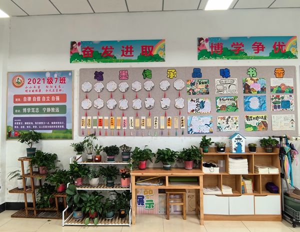 教室是学生学习生活的主阵地。走进每一间参评教室,都能感受到不同的班级特色与文化氛围。整洁的地面、整齐的课桌椅、内容丰富的学习园地、生机勃勃的绿色植物、设计新颖的班级公约和奋斗目标……每一个角落都倾注了师生们的巧思妙想,体现了班级良好的精神风貌和浓厚的学风,营造了温馨雅致、催人奋进的学习环境。