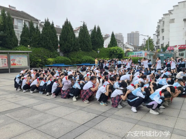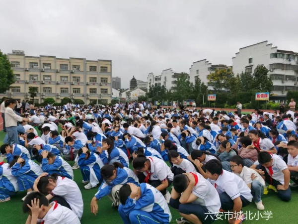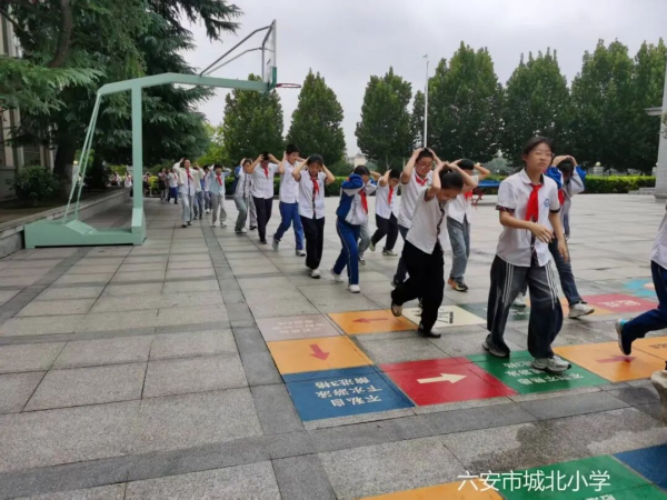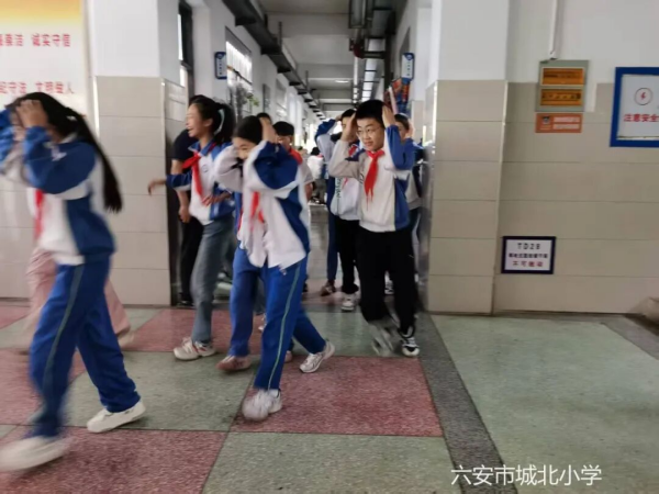 三分钟后,“空袭警报”响起,学生们立即起身,用手或书本护头,猫腰前进,按照预定的疏散逃生路线,分批次快速撤离到塑胶操场、中院、北院、东侧篮球场等安全集结地点。各楼梯口负责疏导的安全员早已就位,时刻提醒学生注意安全、保持冷静、不要拥挤。到达指定集结地后,各班清点人数,及时上报。“解除警报”拉响后,各班学生原路返回教室。整个演练过程组织严密、协调有序。