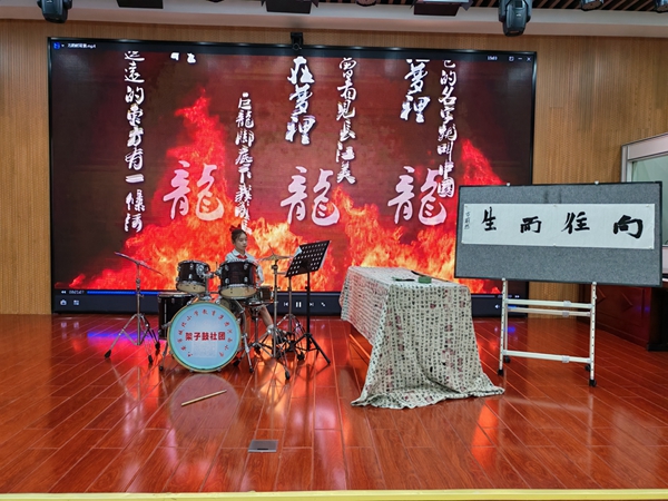 紧随其后的是精彩纷呈的才艺展示环节。队员们纷纷亮出“看家本领”,吹、拉、弹、唱、舞、诵、书、画,各显其能。深情并茂的诗朗诵令人动容,活力四射的架子鼓表演点燃全场,悠扬动听的乐器演奏余音绕梁,挥毫泼墨的书法绘画作品韵味十足……舞台变成了绽放梦想与活力的七彩舞台,充分展现了河西学子全面发展的综合素养和朝气蓬勃的青春风采。
