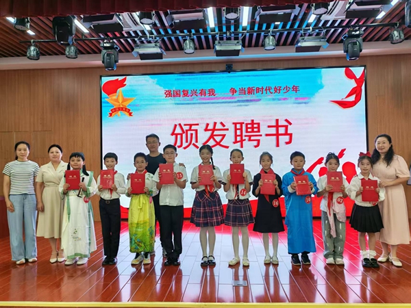 经过近三个小时的激烈角逐,综合评委老师打分和小评委投票,成功选出新一届大队委委员,评委老师为他们颁发聘书。