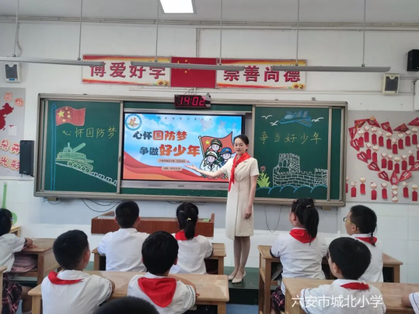 9月19日,学校各中队开展了“心怀国防梦 争做好少年”主题班队会。课堂上,辅导员老师们以“历史+现实+未来”的三维视角,为队员们打造沉浸式国防教育课堂。