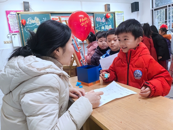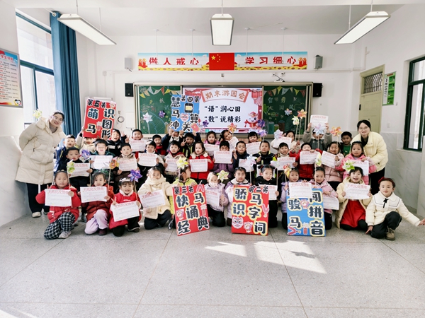活动现场暖意融融、欢声笑语,一年级小朋友手持“闯关卡”化身小骑手,依次挑战“骏马识拼音”“骄马识字词”“快马诵经典”“慧马冲算关”“萌马识图形”五大关卡。孩子们拼读音节、速算习题、辨识图形,每通过一关,老师便盖上鲜红印章,这枚枚印章既是肯定,也为童年添上亮色。