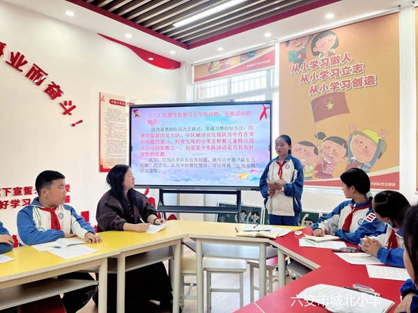 随后,大队委员闻齐、杜姝言、陈梦琪分别就日常红领巾监督岗工作中可能存在的问题和相关细节等作了经验分享。从课间纪律维护到校园环境卫生监督,从文明行为倡导到红领巾的正确佩戴,细致、明确且具有借鉴性。