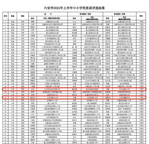 【喜报】我校两位教师在2025年六安市小学英语优质课评选活动中荣获一等奖