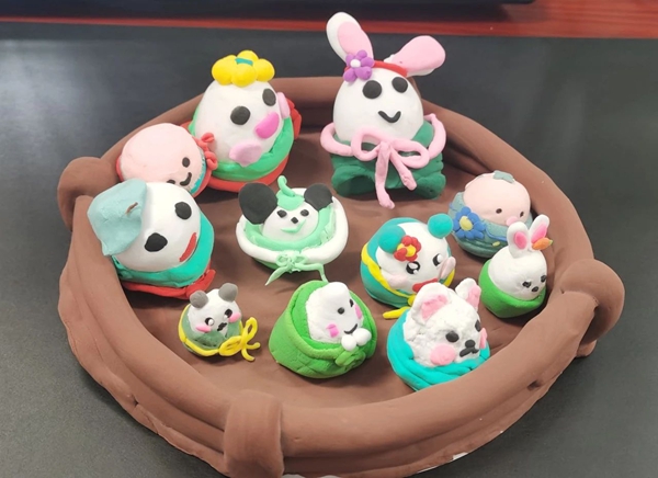 在美术类活动中,队员们充分发挥自己的创造力和想象力。低年级的小朋友们用画笔描绘出一幅幅生动有趣的端午主题画作:色彩鲜艳的龙舟栩栩如生,形态各异的粽子俏皮可爱,处处洋溢着浓浓的节日氛围。高年级的队员们则化身为心灵手巧的小工匠,用彩泥制作出一个个造型独特的粽子:萌萌的熊猫粽、活泼的兔子粽,各种可爱的动物形象让人忍俊不禁。