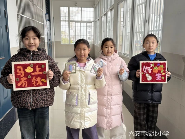 儿童画社团的小画家们围绕“福气小马”主题进行创作,憨态可掬的小马形象与元宝等新年元素巧妙融合,每一抹色彩都尽显童真童趣;版画社团的小艺术家们共同拓印“马年大吉”主题长卷,灵动的小马纹样与如意等吉祥图案在宣纸上徐徐铺展,让非遗板印的独特魅力与新年的喜庆氛围完美交融;彩泥社团的孩子们则化身“创意工匠”,将五彩粘土揉捏成一只只造型各异、俏皮灵动的小马,尽显丰富的想象力;戳戳秀社团里,“马上发财”“事事如意”“好柿发生”等一幅幅充满巧思的绒布作品,充分展示了孩子们精巧的创作心思和对新年的美好憧憬。